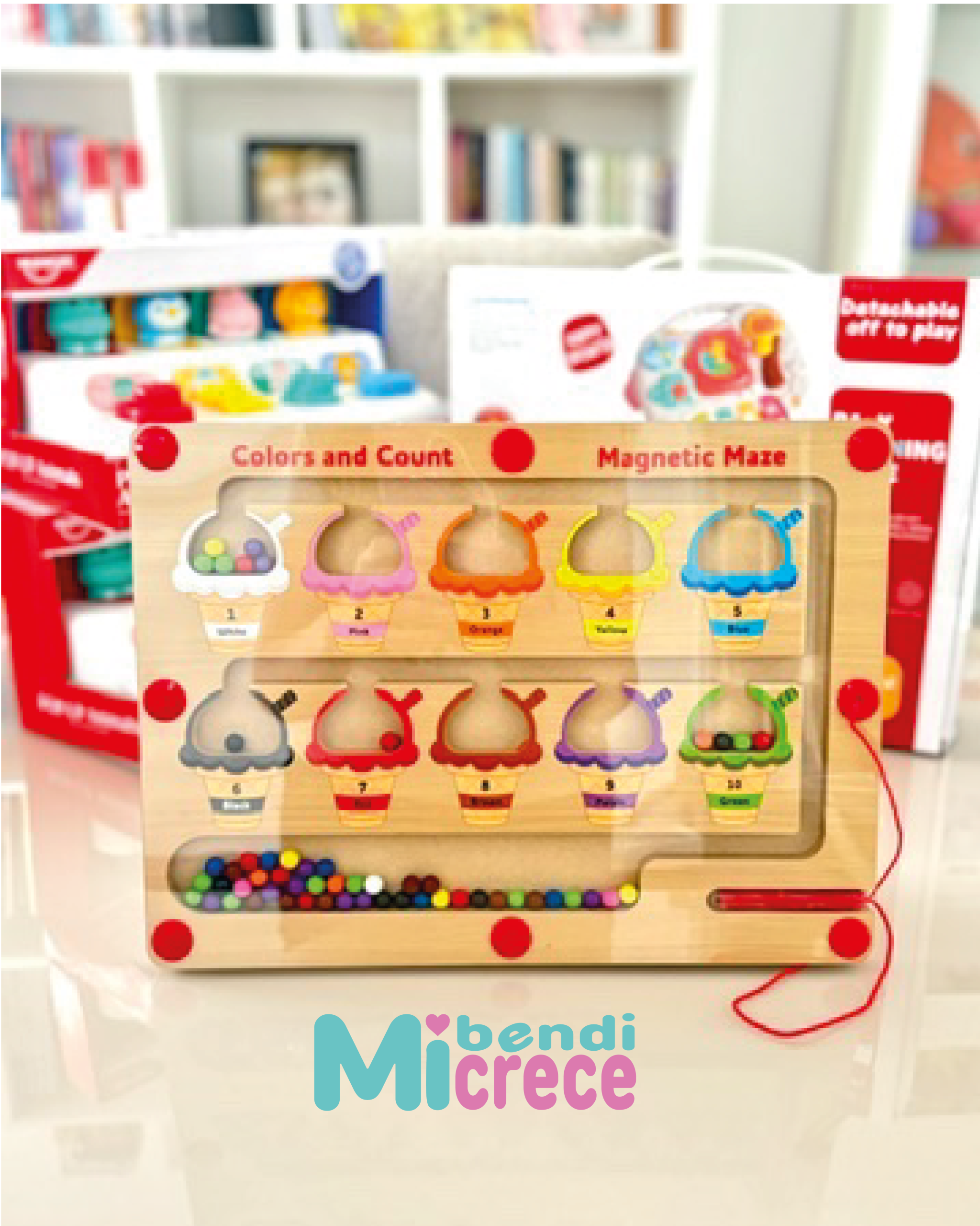 guiar las bolitas de colores a través del laberinto usando un lápiz magnético.