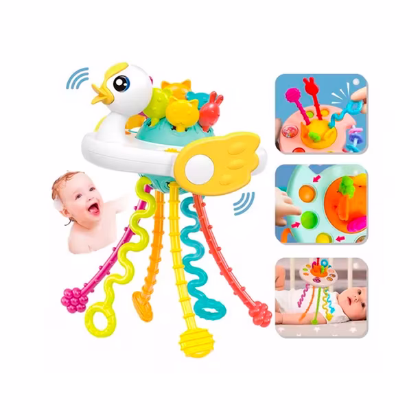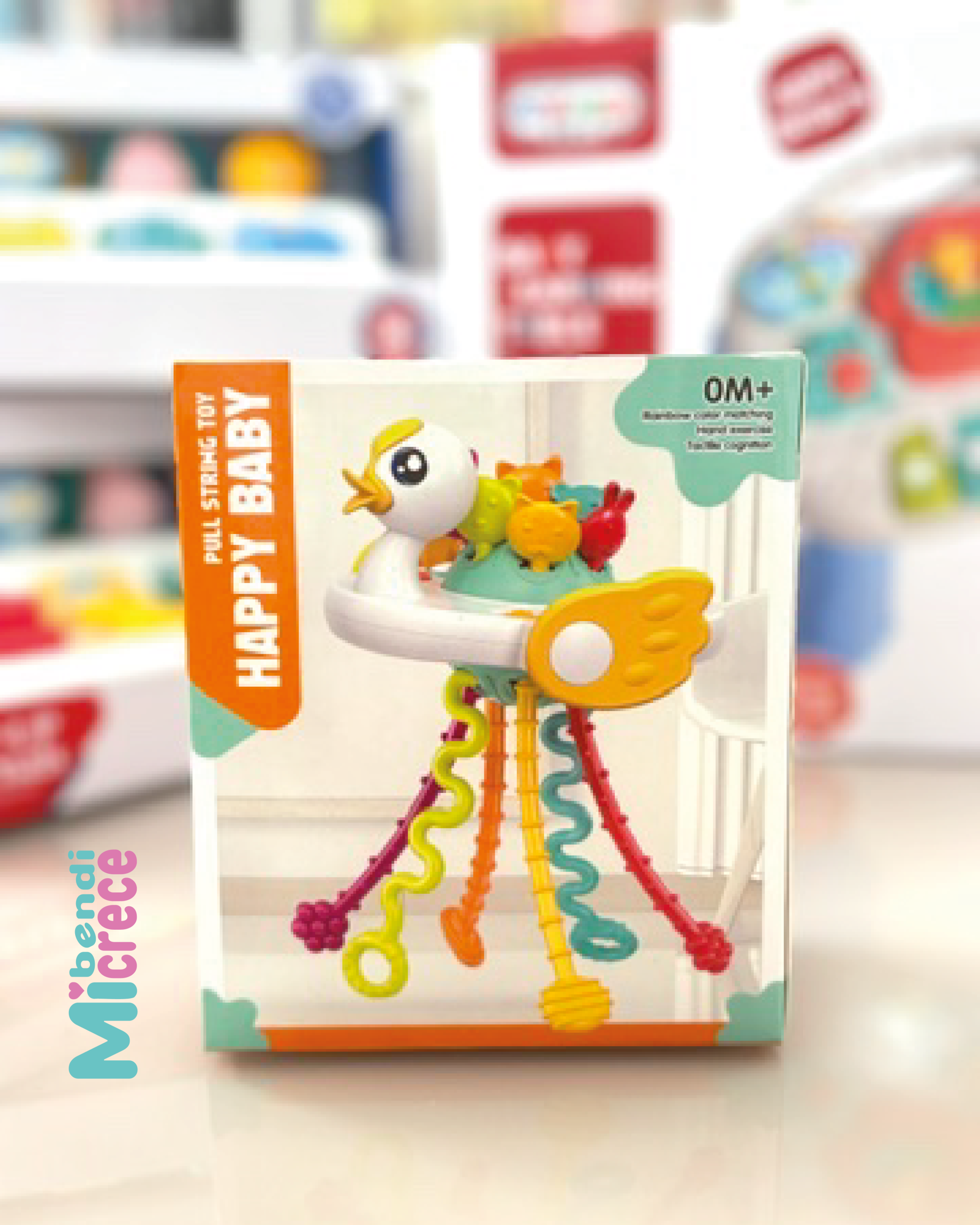 Desarrollo de habilidades cognitivas: Ayuda a los bebés a entender la relación de causa y efecto al tirar de las cuerdas y ver cómo se mueve el juguete. También fomenta la resolución de problemas y la capacidad de estructurar la información que reciben a través de sus sentidos.